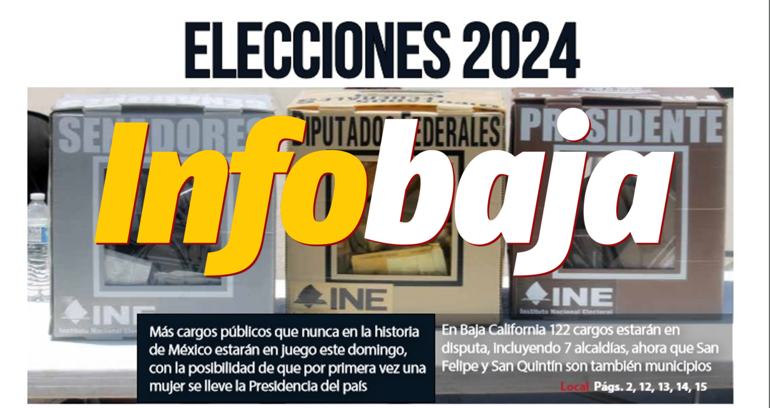 Esta nota es traída a ti por Infobaja Infobaja, periodismo que vale mucho y no cuesta mayo 30, 2024 Más cargos públicos que nunca en la historia de México estarán en juego este domingo, con la posibilidad de que por primera vez una mujer se lleve la Presidencia del país. En Baja California 122 cargos estarán en disputa, incluyendo 7 alcaldías, ahora que San Felipe y San Quintín son también municipios. Redaccion/InfoBaja – editorial@infobaja.info Principales