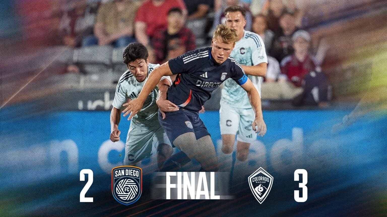 SAN DIEGO, CALIFORNIA – San Diego FC (SDFC) sufrió su segunda derrota histórica al caer 3-2 contra los Colorado Rapids en el Dick’s Sporting Goods Park. Con la derrota de esta noche, el SDFC ahora tiene un récord de 2-2-0 como visitante. Luca de la Torre anotó para SDFC (4-2-2, 14 pts) para empatar el partido 1-1 al principio de la segunda mitad y Tomás Ángel anotó su primer gol para SDFC en el minuto 89, pero Colorado Rapids (4-2-2, 14 puntos) sobrevivió a una remontada tardía del SDFC. Fue el segundo gol de la temporada para De la Torre,…