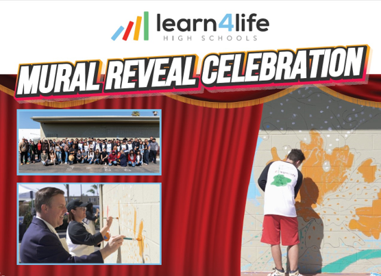 Chula Vista, CA – El jueves 27 de marzo, 2025, Learn4Life celebrara a sus estudiantes, arte y comunidad en su evento de Dedicación de Murales. Este evento gratuito está abierto a toda la comunidad. Conozca a los artistas de la obra y disfrute de un día de conexión e inspiración. Explore los puestos de información de colaboradores que ofrecen recursos, actividades, comida y mucho más. Cuando: Jueves 27 de Marzo, 2025 – 12:00 p.m. – 2:00 p.m. Ubicación: Escuela Secundaria San Diego Workforce Innovation, 310 Broadway, Chula Vista, CA 91910 Para participar en el evento y obtener más información viste: