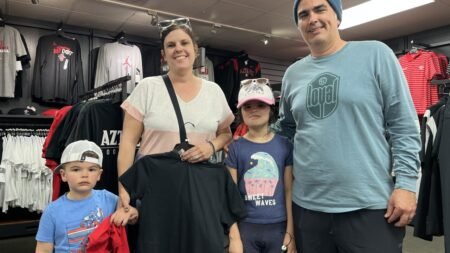 San Diego, California, 28 de marzo 2023 – La mercancía de los Aztecs se está vendiendo rápidamente en la tienda…
