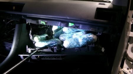 San Diego, California, 14 de junio 2023 – Agentes encontraron pastillas de fentanilo y metanfetamina ocultas en el salpicadero, la…