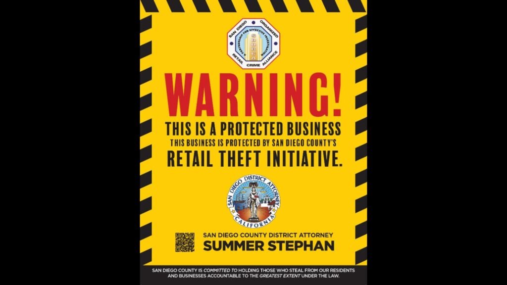 San Diego, California — La Fiscalía del Condado de San Diego y la Alianza Contra el Crimen Minorista Organizado anunciaron la disponibilidad de señalización gratuita para ventanas dirigida a advertir a posibles ladrones que serán procesados, una medida que busca reforzar la implementación de la Proposición 36 y apoyar a los negocios locales. La iniciativa fue presentada junto a Downtown San Diego Partnership y el Departamento de Policía de San Diego.