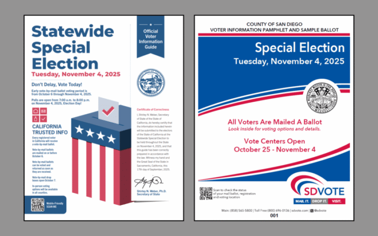 San Diego, California – Más de 2 millones de votantes registrados en el condado recibirán pronto su folleto de información electoral por correo. Este incluye opciones para votar, fechas importantes, una boleta de muestra, y una lista de…