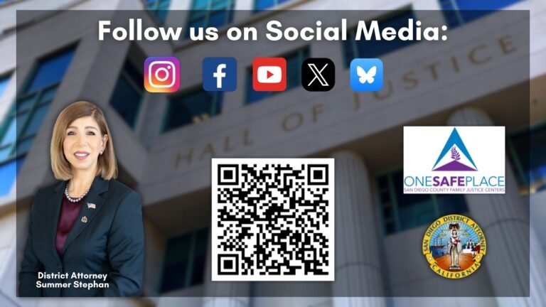 San Diego, CA – La Fiscal de Distrito del Condado de San Diego, Summer Stephan, está alentando al público a seguir las cuentas oficiales de su oficina en redes sociales, como parte de su compromiso con la transparencia,…