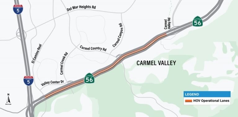SAN DIEGO – El Departamento de Transporte de California (Caltrans) anunció hoy la apertura de nuevos carriles para vehículos de alta ocupación (VAO o HOV en Ingles) en cada dirección de la Ruta Estatal 56 (SR-56), entre El…