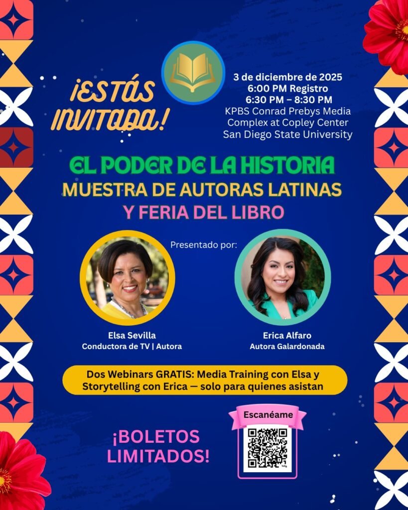 San Diego, California — La visibilidad literaria latina dará un paso histórico este 3 de diciembre de 2025, cuando KPBS en San Diego State University (SDSU) presente la primera Feria y Exhibición de Autoras Latinas, un evento concebido por y para mujeres latinas con el objetivo de ampliar la representación en la industria editorial.