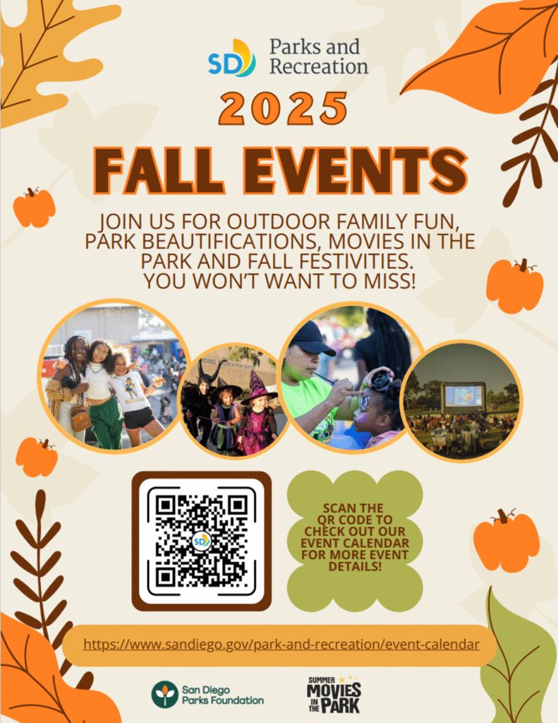 San Diego, California — El espíritu del otoño y Halloween ya se siente en toda la ciudad. El Departamento de Parques y Recreación de San Diego ha organizado una amplia variedad de eventos temáticos gratuitos o de bajo costo para celebrar la temporada en centros recreativos y parques de todas las comunidades, desde septiembre y hasta noviembre.